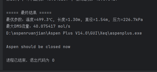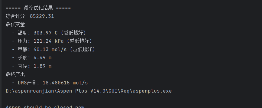 # 拿到最优参数后,最后跑一次Aspen看看具体的物理数值
