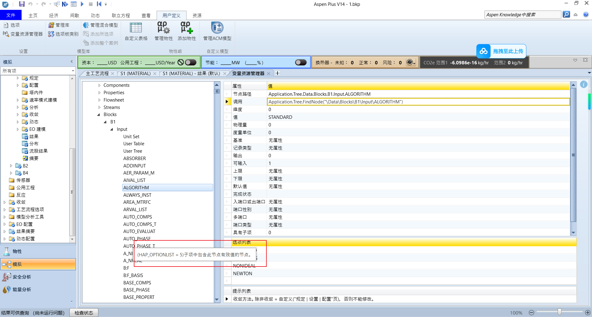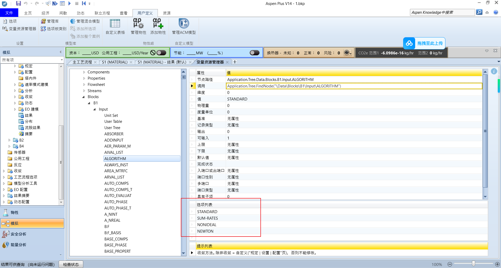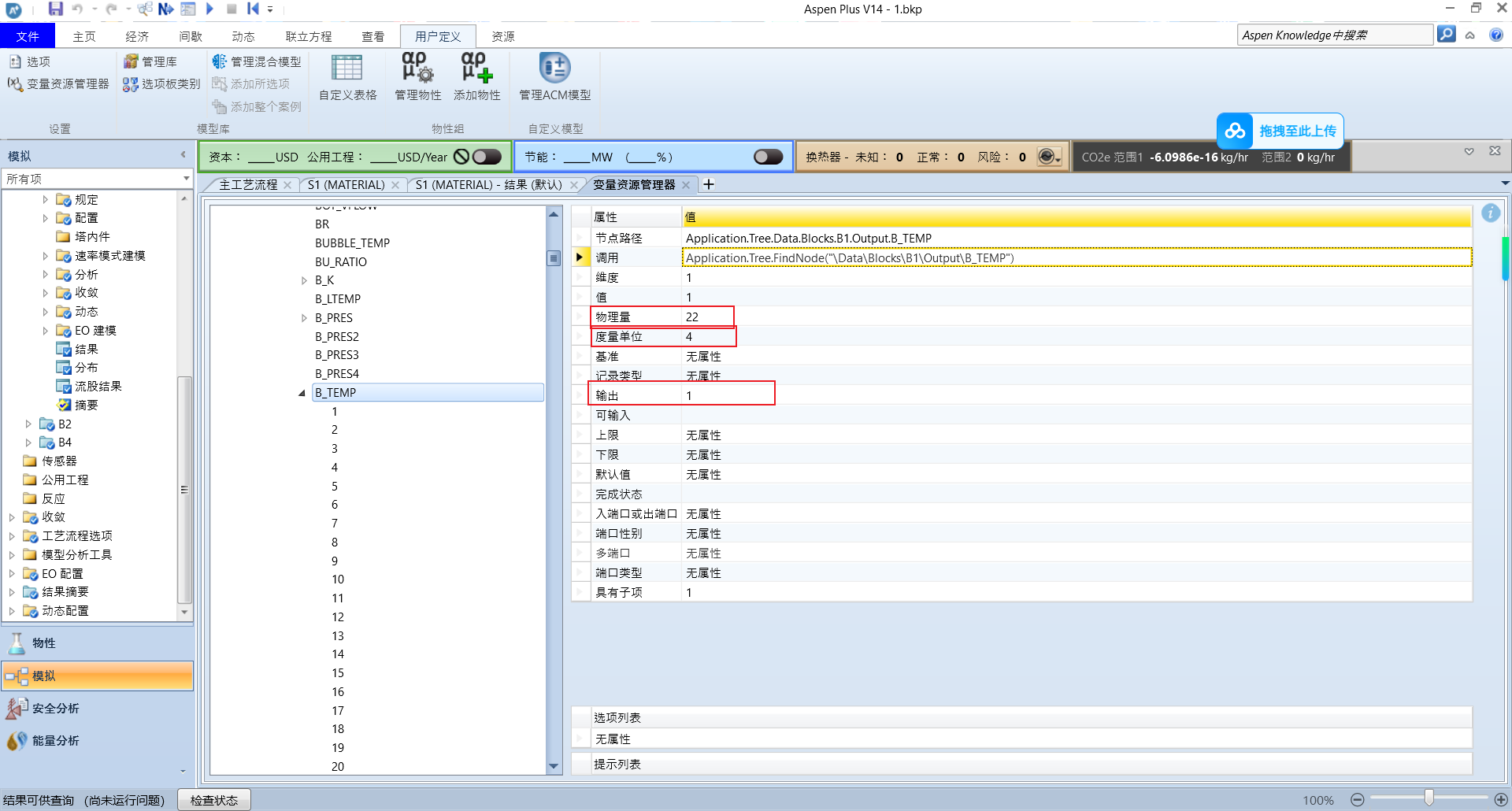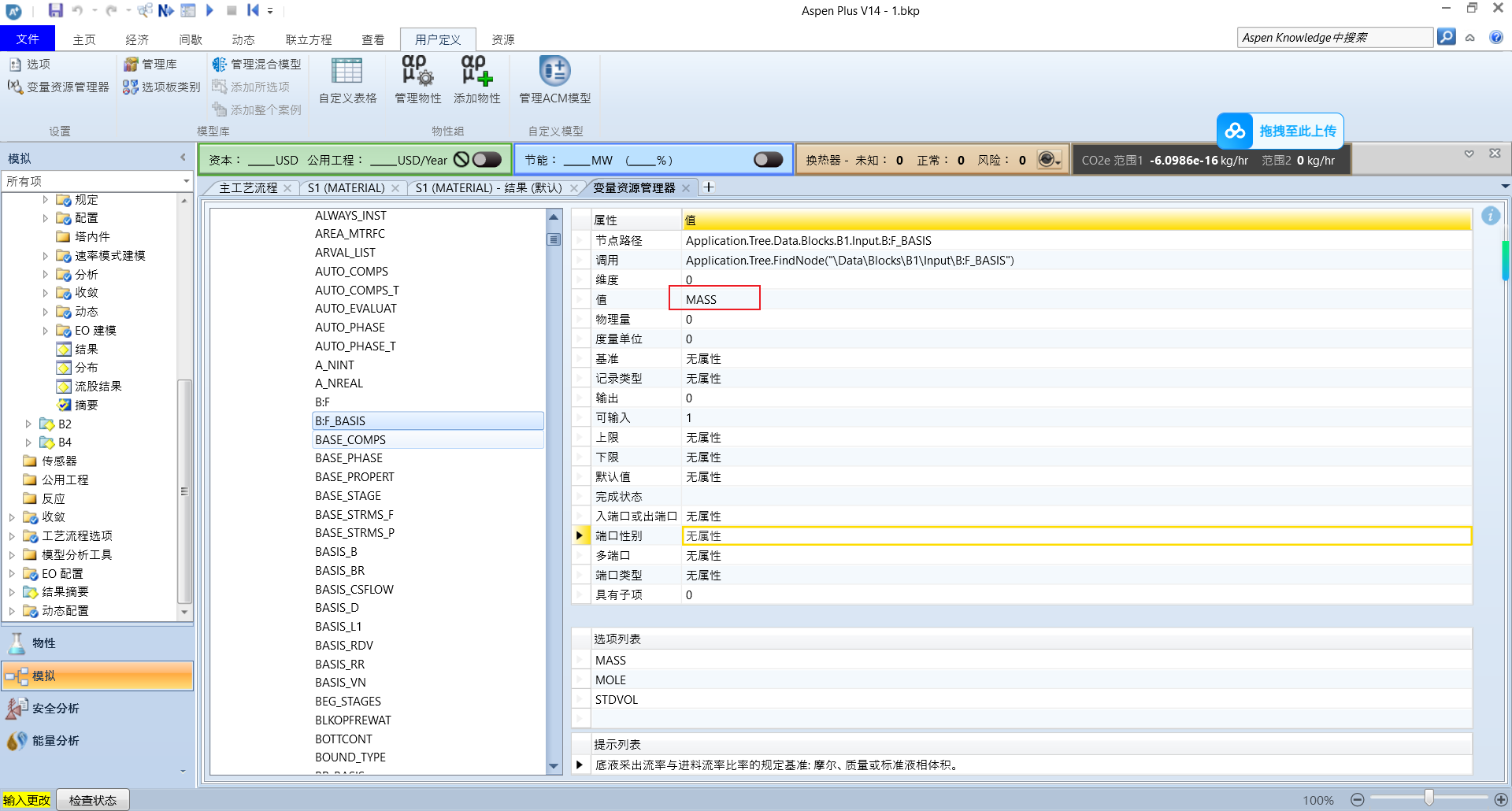 代码执行后,你会发现 Aspen 中的设置已经成功变为 “MASS”。同理,这种方法极其强大,甚至可以用来修改变量的度量单位。