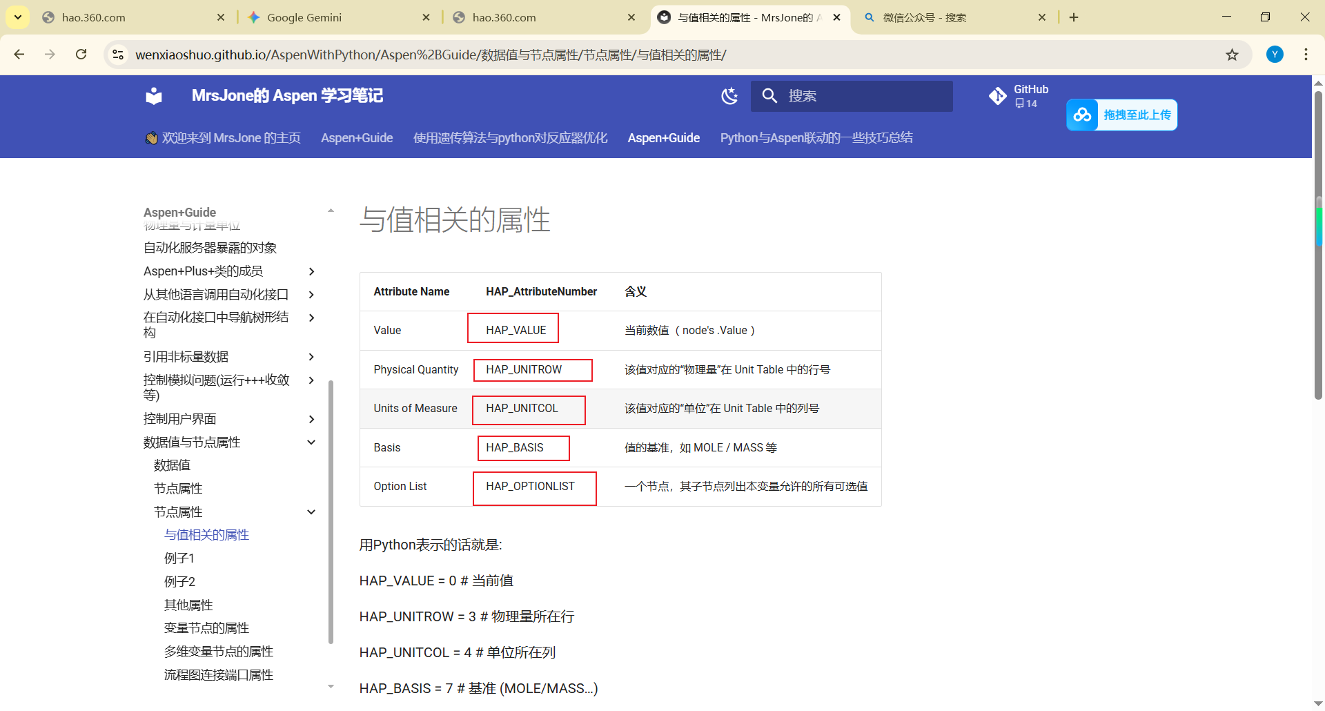 运行这段代码,你会得到一个长长的列表。我已经整理了部分常用的放在我的网站上(https://wenxiaoshuo.github.io/AspenWithPython/),这里列举一部分: